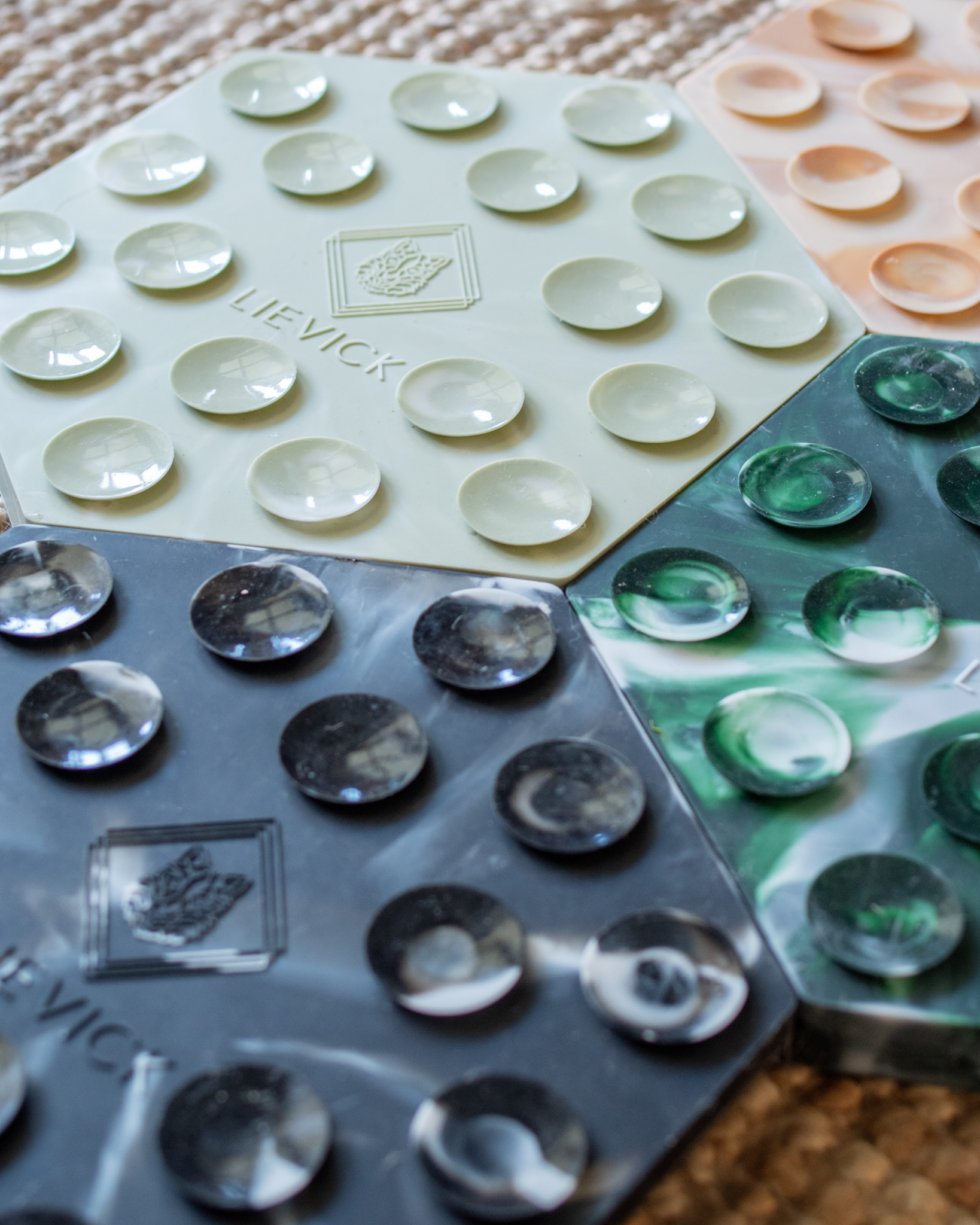 De kleuren Dark Latte en Grey zijn niet dezelfde kleur als de no-spill matten. De likmatten zijn een tint donkerder, maar blenden prachtig bij de no-spill matten door het witte marmer patroon.